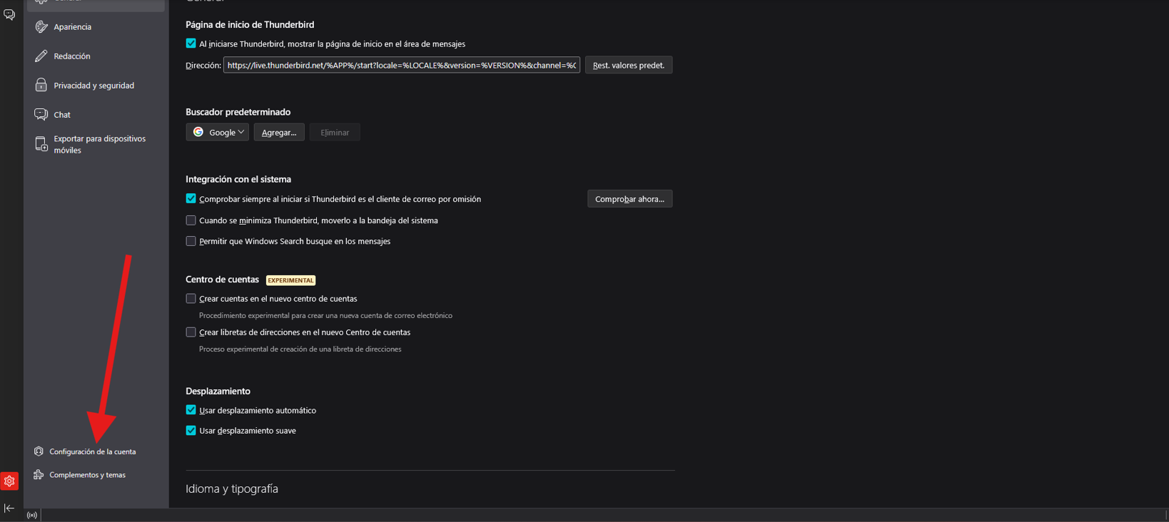 2º Pincharemos sobre configuración de la cuenta.
