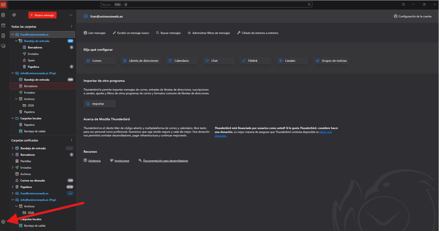 Configurar correo electrónico en Thunderbird